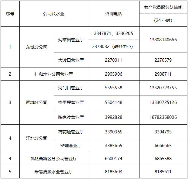 公司及水業(yè)咨詢(xún)電話及共產(chǎn)黨員服務(wù)隊(duì)電話: